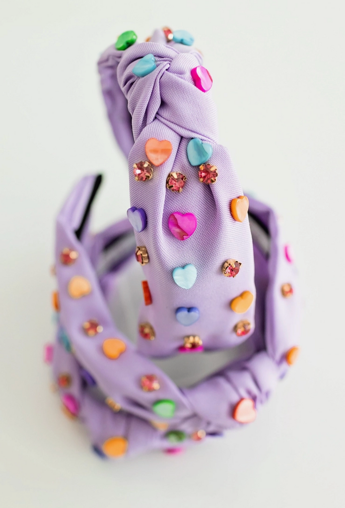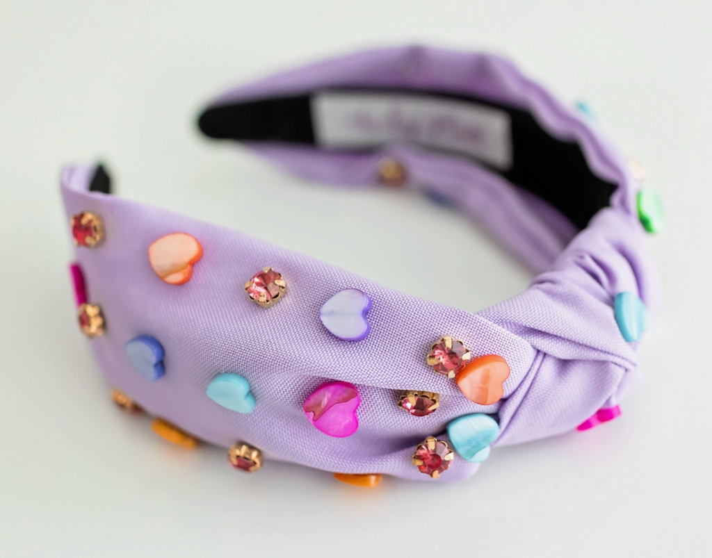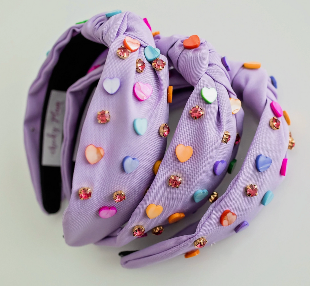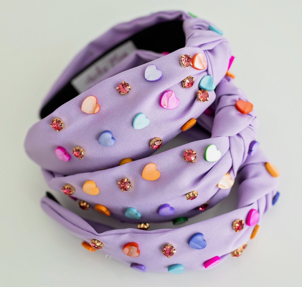 Spread love and style with our Lavendar Loveburst Headband! Adorned with adorable hearts, this headband is perfect for valentine's day or any day of the year. Made to fit children ages 5 and up, as well as adults, embrace cuteness and fashion with this fun accessory.