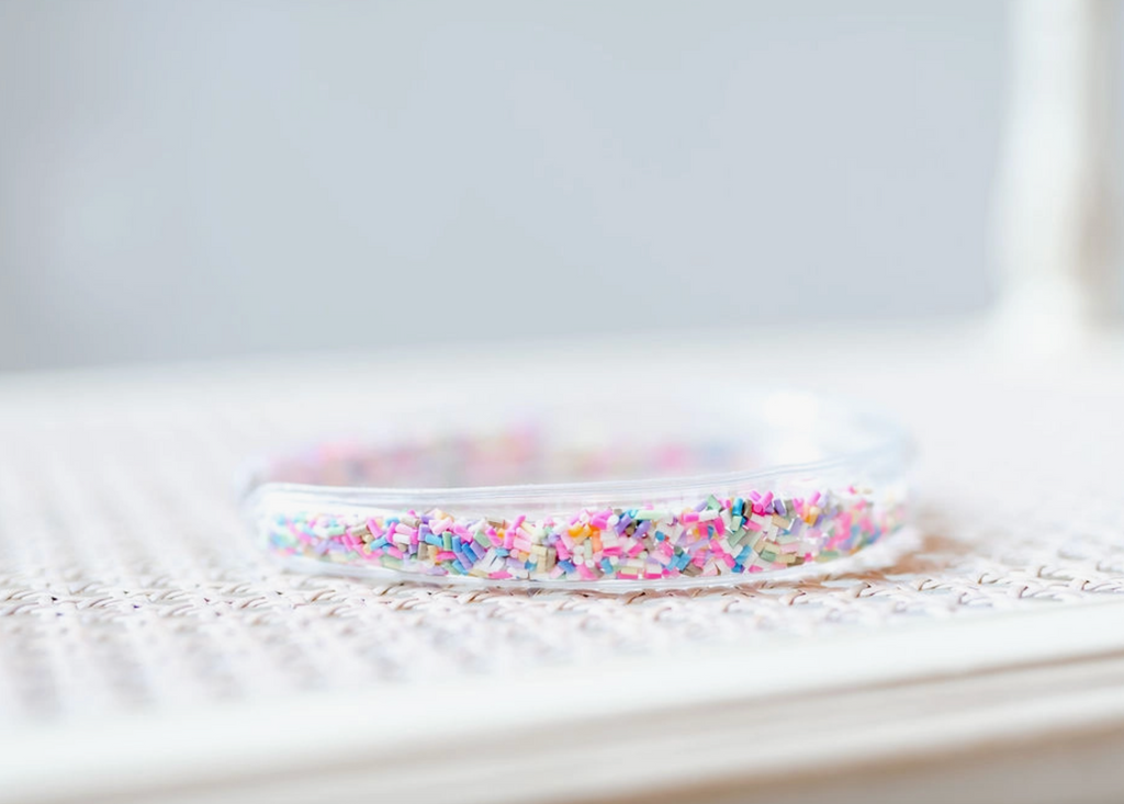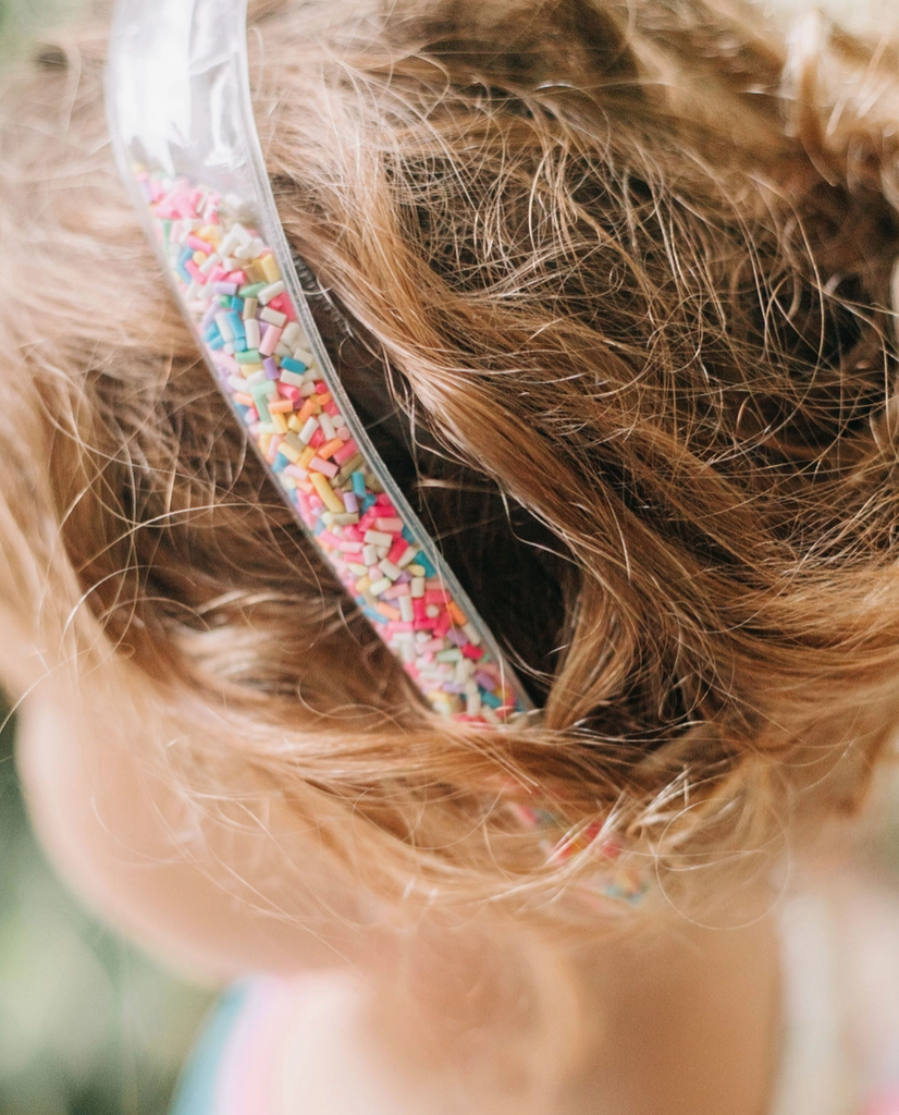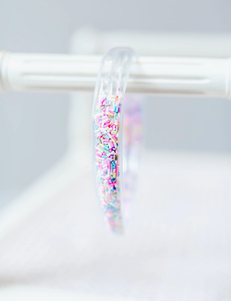 Get ready to shake things up with our Sprinkles Confetti Headband! This playful accessory features a built-in shaker filled with colorful sprinkles, adding a touch of whimsy to any outfit. Perfect for any fun-loving individual looking to add a unique twist to their style. (Sprinkle some joy into your wardrobe with this quirky headband!)