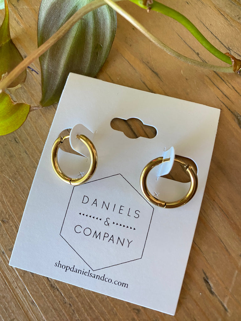 Add a touch of timeless flair with our Classic Mini Gold Hoops. Made of durable stainless steel, these hoops will elevate any outfit with understated elegance. Perfect for any occasion - you can't go wrong with these mini hoops!