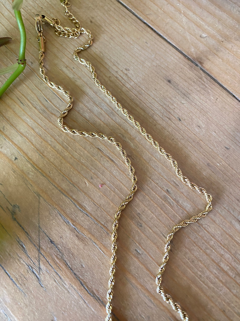 Wrap yourself in celestial charm with our Rope the Moon Chain Necklace. Crafted with a gold twist chain and durable stainless steel, this unique piece will elevate any outfit. Reach for the stars (and the moon!) with this playful and stylish accessory. (Moon not included).