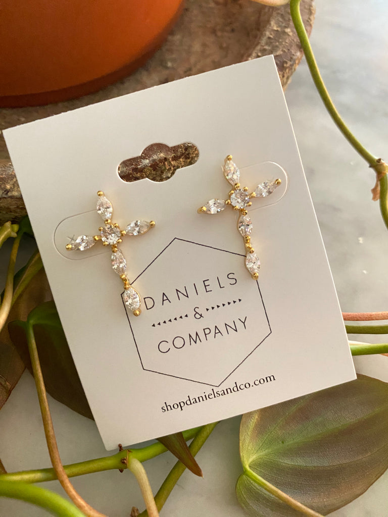 Add some sparkle to your ears with these Marquis Cross Earrings! The cross shape adds a unique touch to the classic CZ stone, making them sweet and stylish. Perfect for any occasion, these earrings are sure to make you stand out in a playful and fun way!