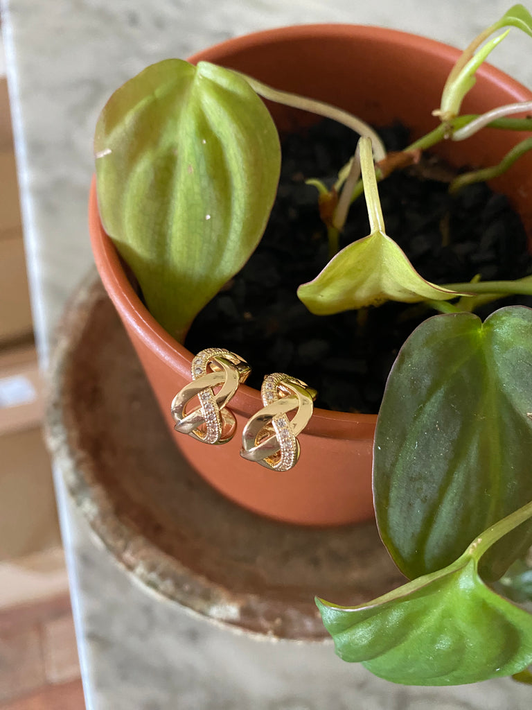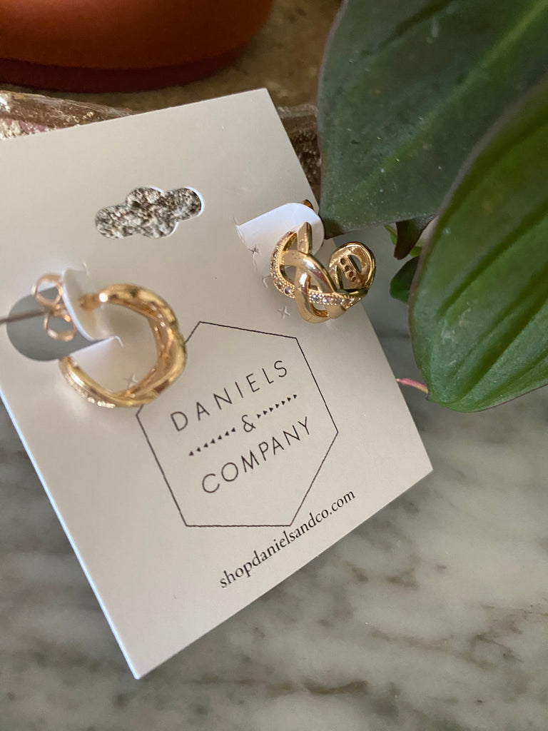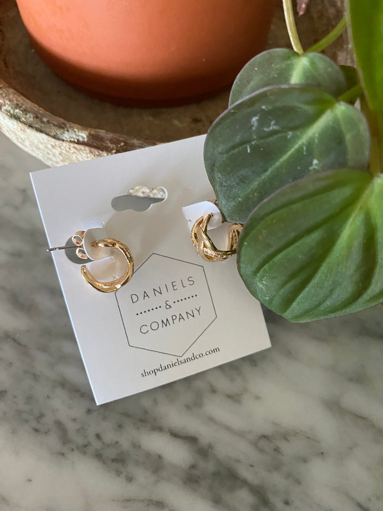 Introducing our Weave Hoops - adding a touch of playfulness to your style. With intricate weave detail and sparkling CZ stones, these petite and dainty earrings are perfect for any occasion. Upgrade your earring game with these quirky hoops.