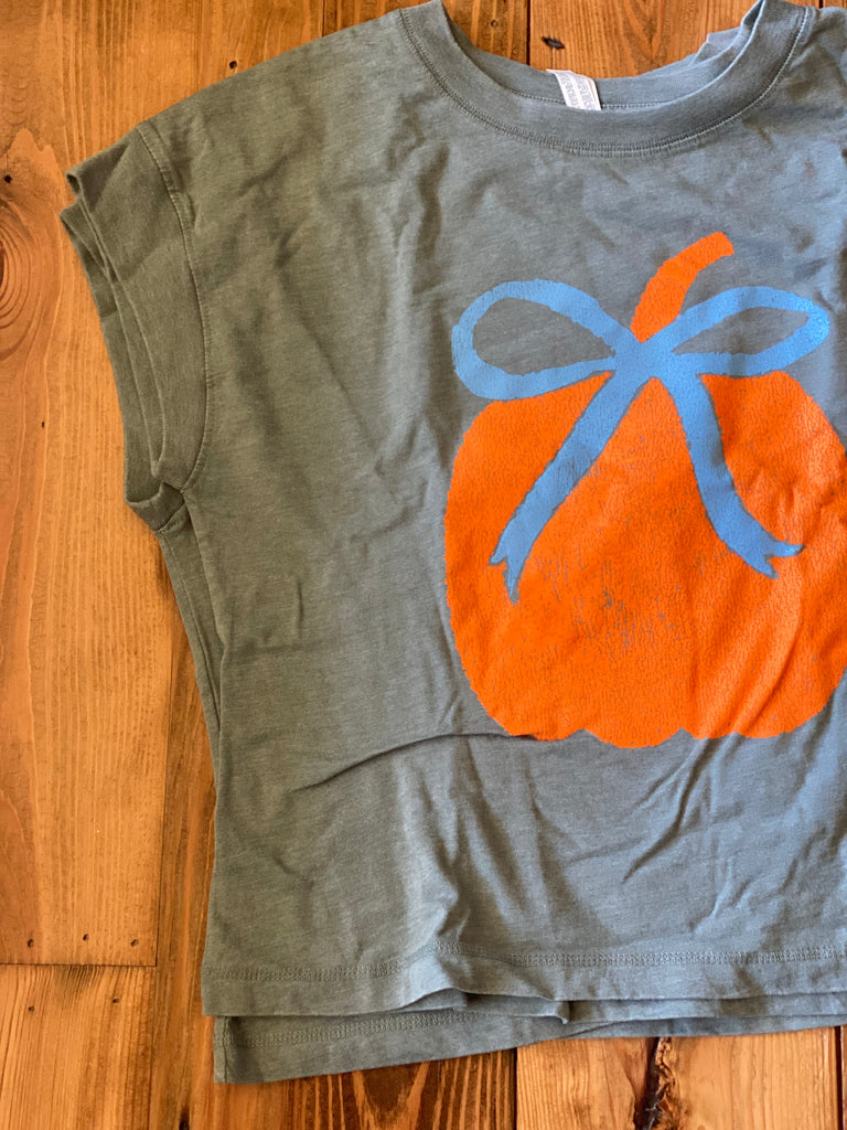 Cozy, casual, and oh-so-cute! This soft olive tee features a bold orange pumpkin topped with a playful blue bow — the sweetest twist on a fall classic. Perfect for pumpkin patch days, sipping cider, or adding a festive touch to your everyday style. Pair it with jeans, leggings, or a cozy cardigan for the ultimate autumn vibe! šŸ‚āœØ