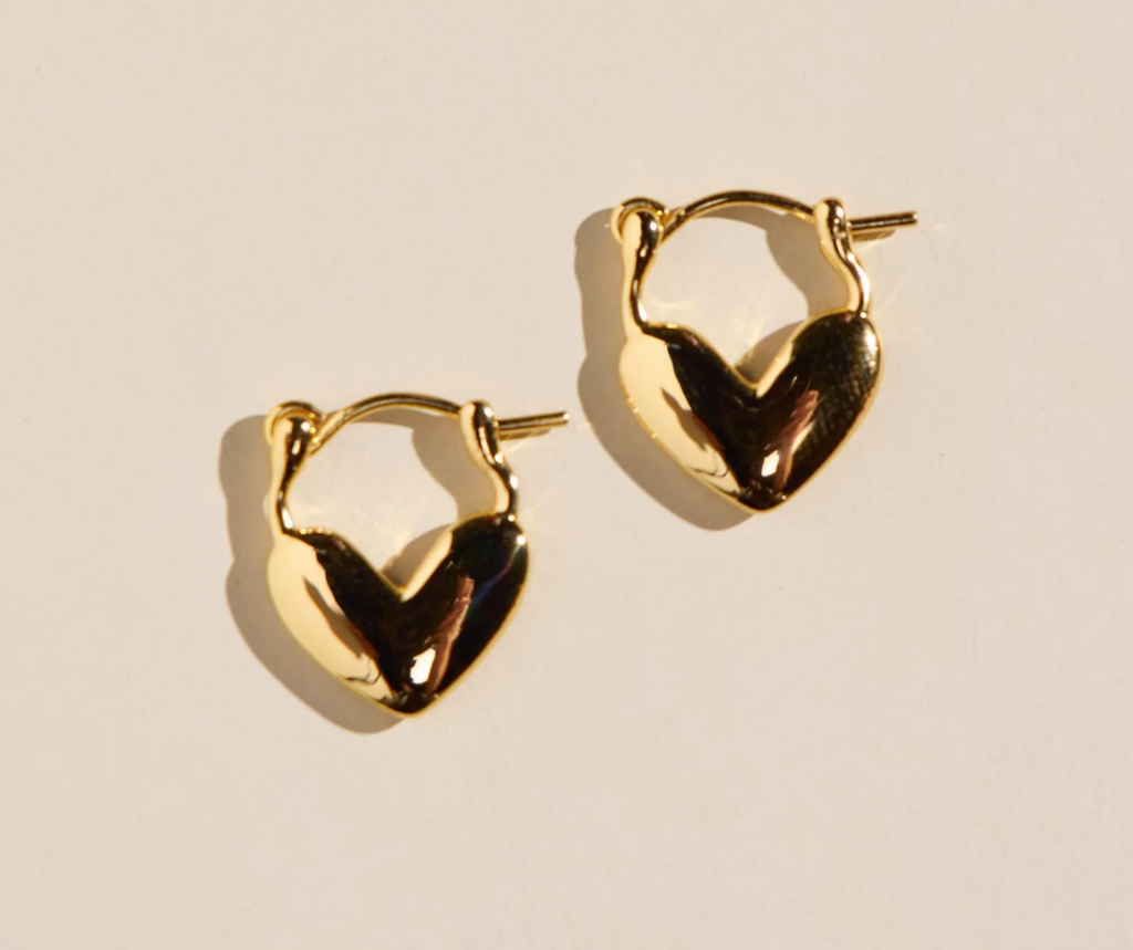 Gold Heart Lock Huggies